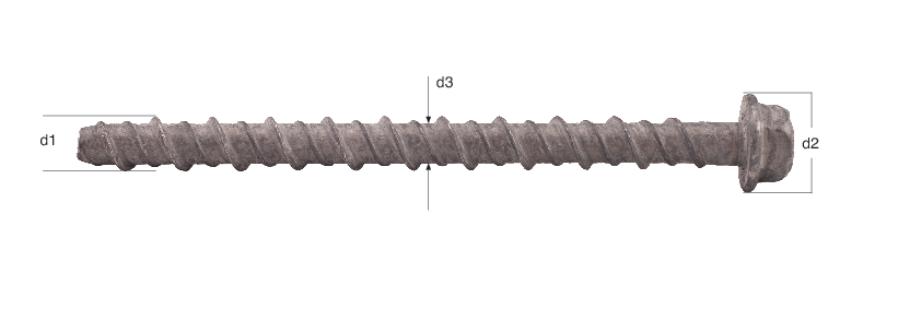 MFT Betongskrue for feste av sviller, skinner, beslag, treverk mot betong, hulltegl og kompakt tegl. Korrosjonsklasse C3 - for innvendig og utendørs bruk. Maks feste: 5 mm.