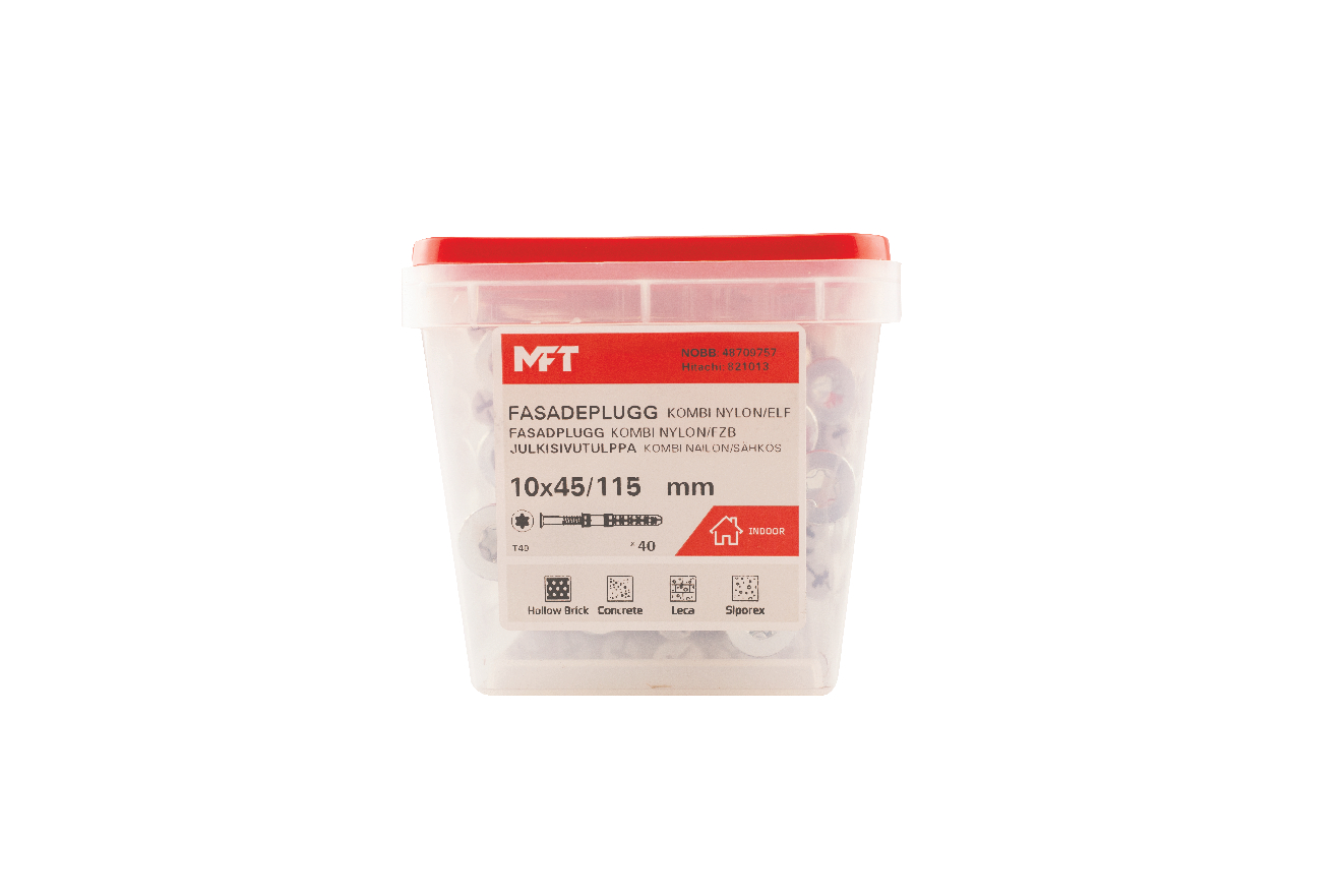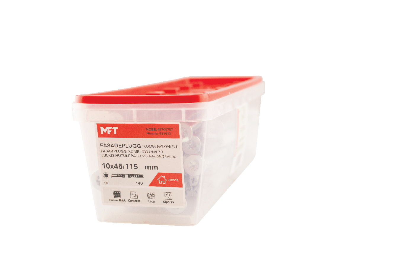 MFT -facade plug kombi. ETA-12/0349 and CE marked. Delivered in plastic box, 40 Qty/pack.