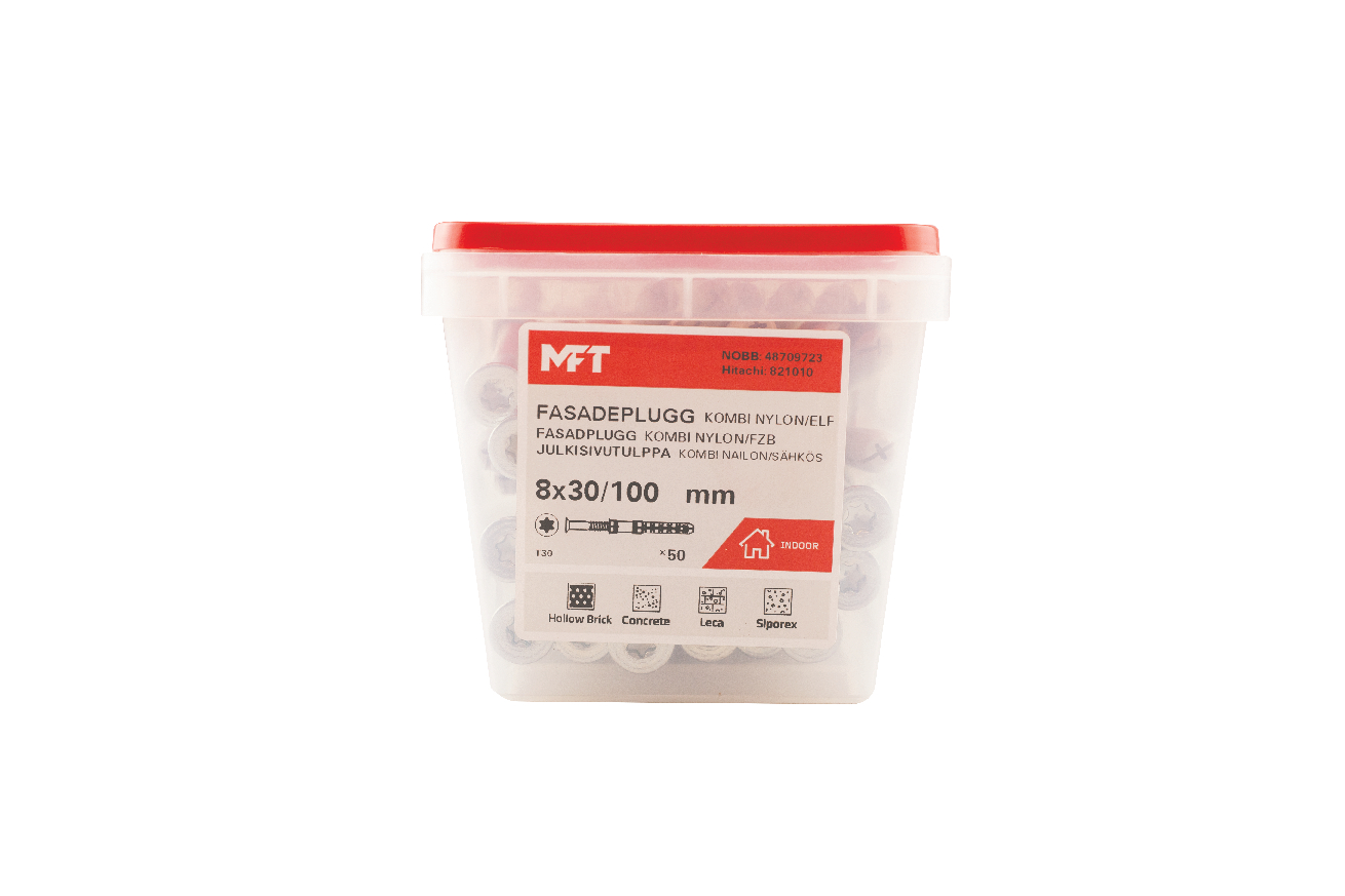 MFT -facade plug kombi. ETA-12/0349 and CE marked. Delivered in plastic box, 50 Qty/pack.