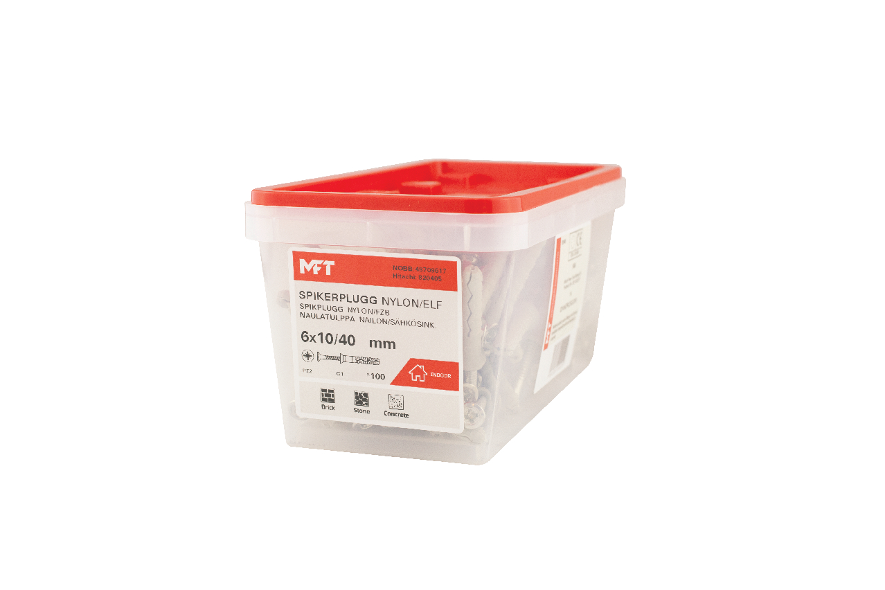 MFT-nail plug. ETA-12/0360 and CE marked. Delivered in plastic box, 100 Qty/pack.