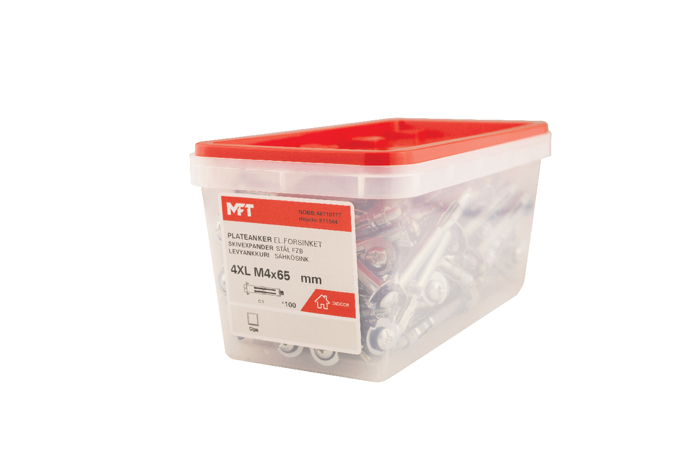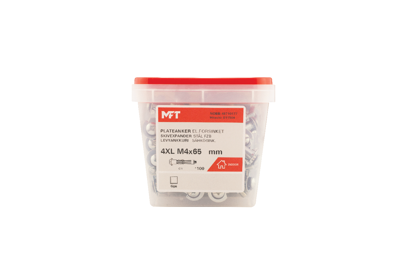 | Product no. | Maks skjær vegg gips 1 x 13 mm | Maks skjær vegg gips 2 x 13 mm | Maks uttrekk tak gips 1 x 13 mm | Maks uttrekk tak gips 2 x 13 mm | For plate- tykkelse | Bor- dim. | Anker- lengde | Skrue- dim. | Skrue- lengde |