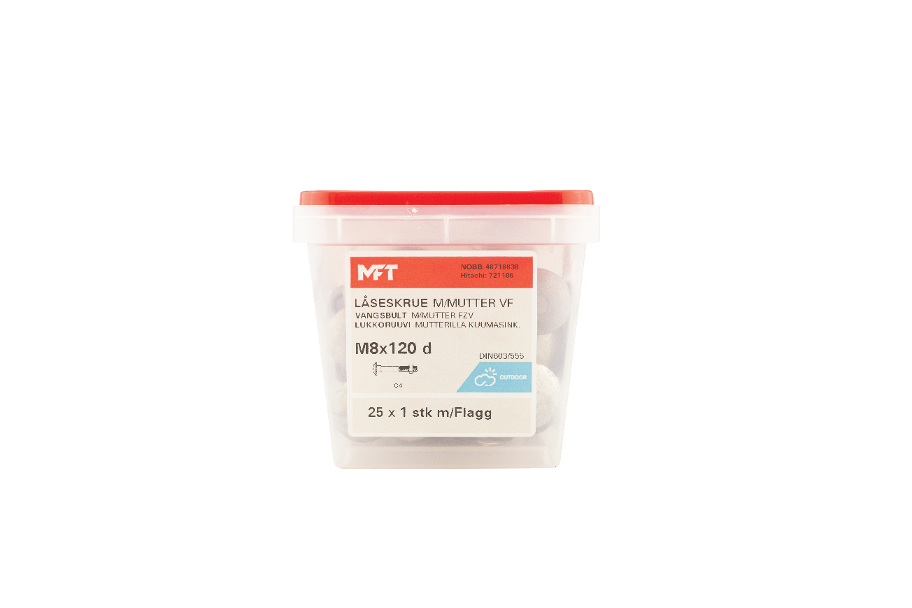 MFT-lock screw is made after standard DIN603 and nut after standard DIN555.