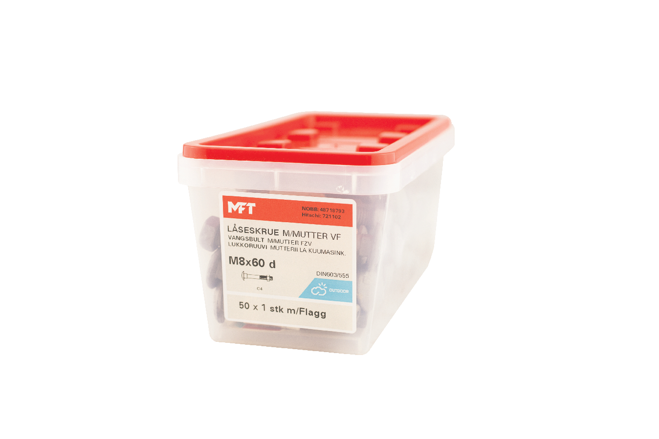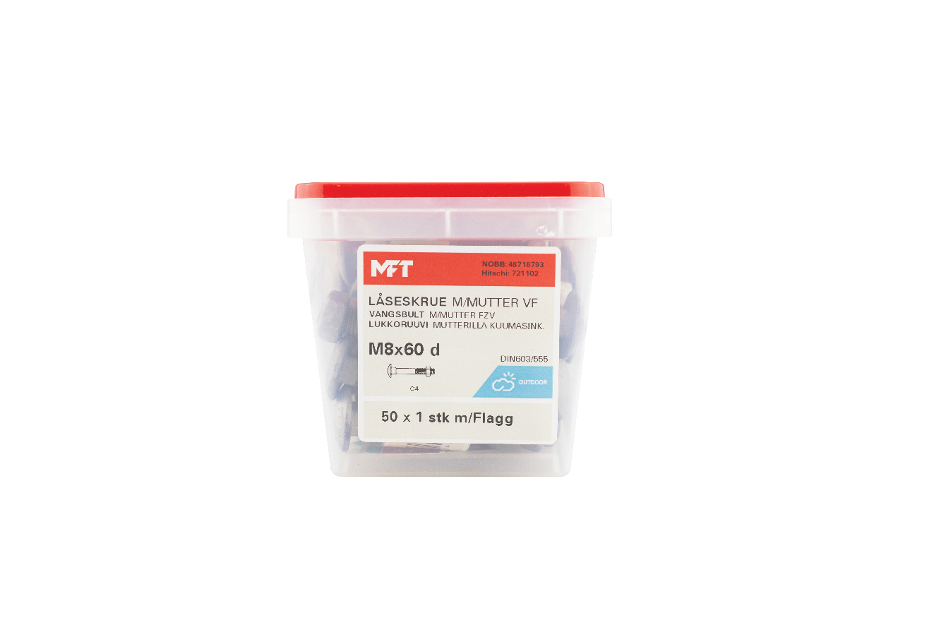 MFT-lock screw is made after standard DIN603 and nut after standard DIN555.