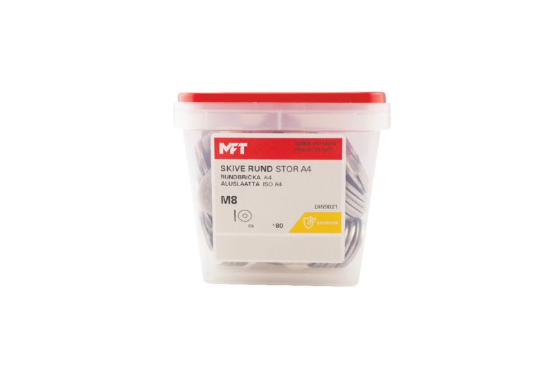 MFT Skive rund stor brukes sammen med skrue/bolt for å øke trykkfordelingen ved sammenskruing av detaljer. For innendørs bruk.