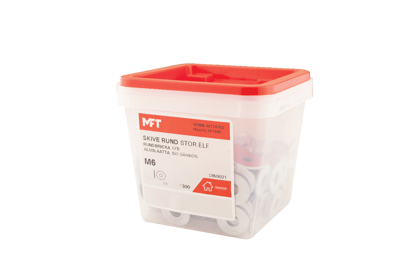 MFT Skive rund stor er produsert i henhold til DIN9021 standard i herdet karbonstål. Skiven har en elektrolytisk overflatebehandling. Korrosjonsklasse C1.
